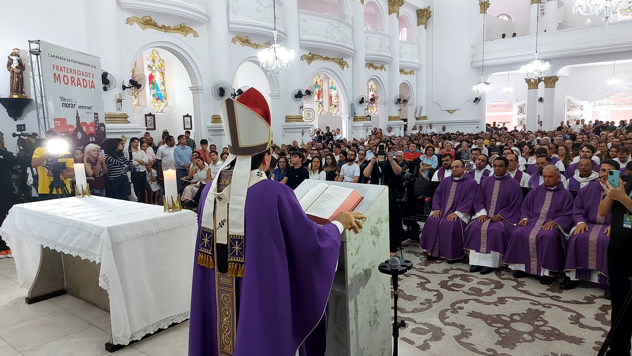 Dom Paulo Jackson escolheu a matriz do Espinheiro para a celebração da Missa de Cinzas porque a igreja, em breve, será elevada, oficialmente, a concatedral da Arquidiocese de Olinda e Recife.