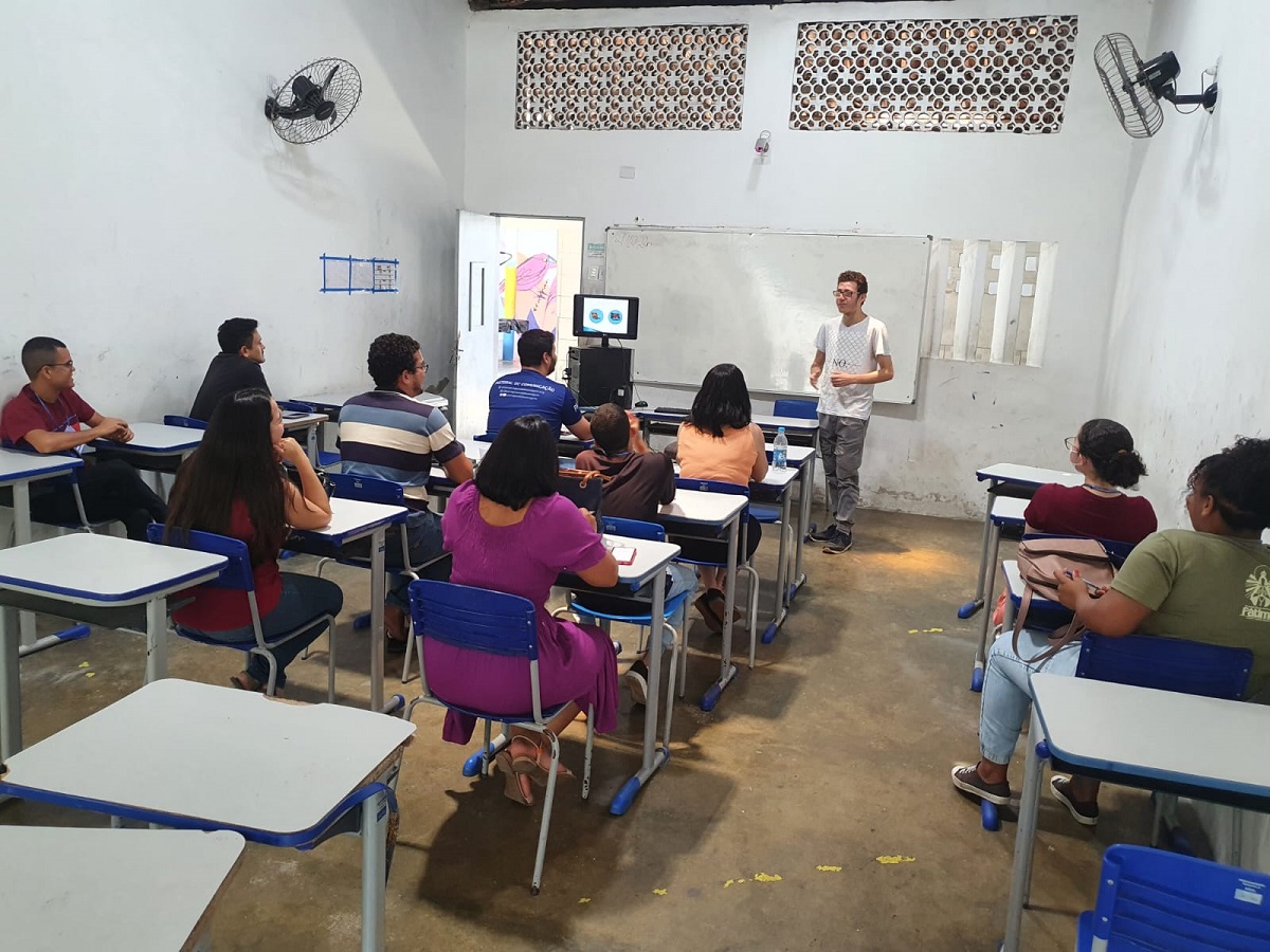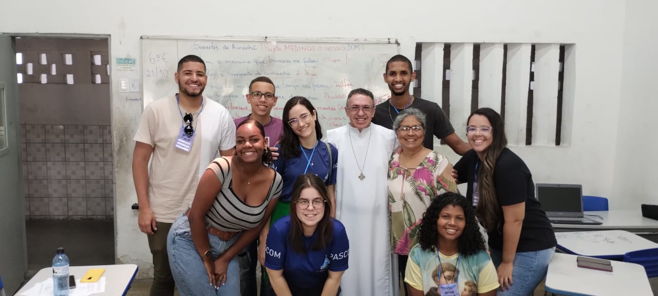 O vigário episcopal do Vicariato Boa Viagem, frei Joaquim da Luz, entre os participantes da oficina de Texto Jornalístico.