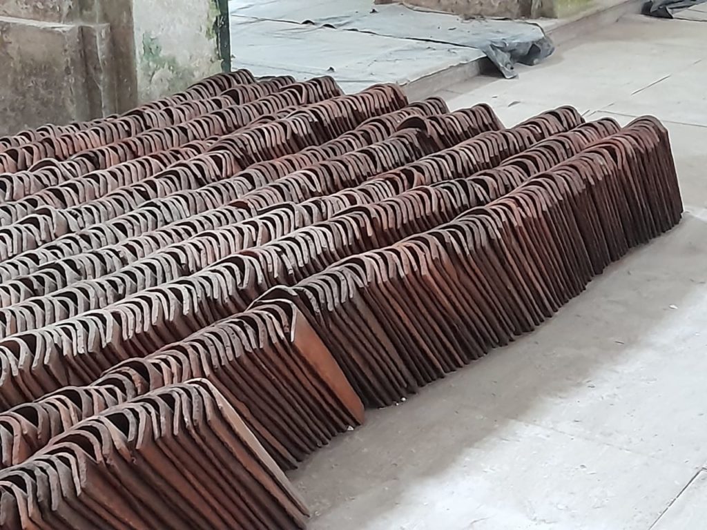 Outro trabalho interessante nessa etapa de recuperação da igreja de São José é o cuidado com as telhas antigas: as que se mantém em bom estado são retiradas, limpas e colocadas de volta – sobre a base de alumínio e de telhas cerâmicas novas. Assim, o telhado permanece com a aparência original.