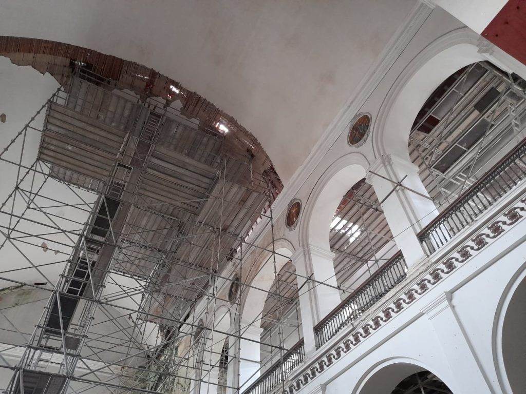 Construída no século 19, a matriz de São José, no centro do Recife, está fechada desde 2013, quando parte do teto desabou devido a uma infestação de cupins. Telhado e forro estão sendo recuperados desde outubro do ano passado e estima-se que as obras devem seguir até fevereiro de 2022.