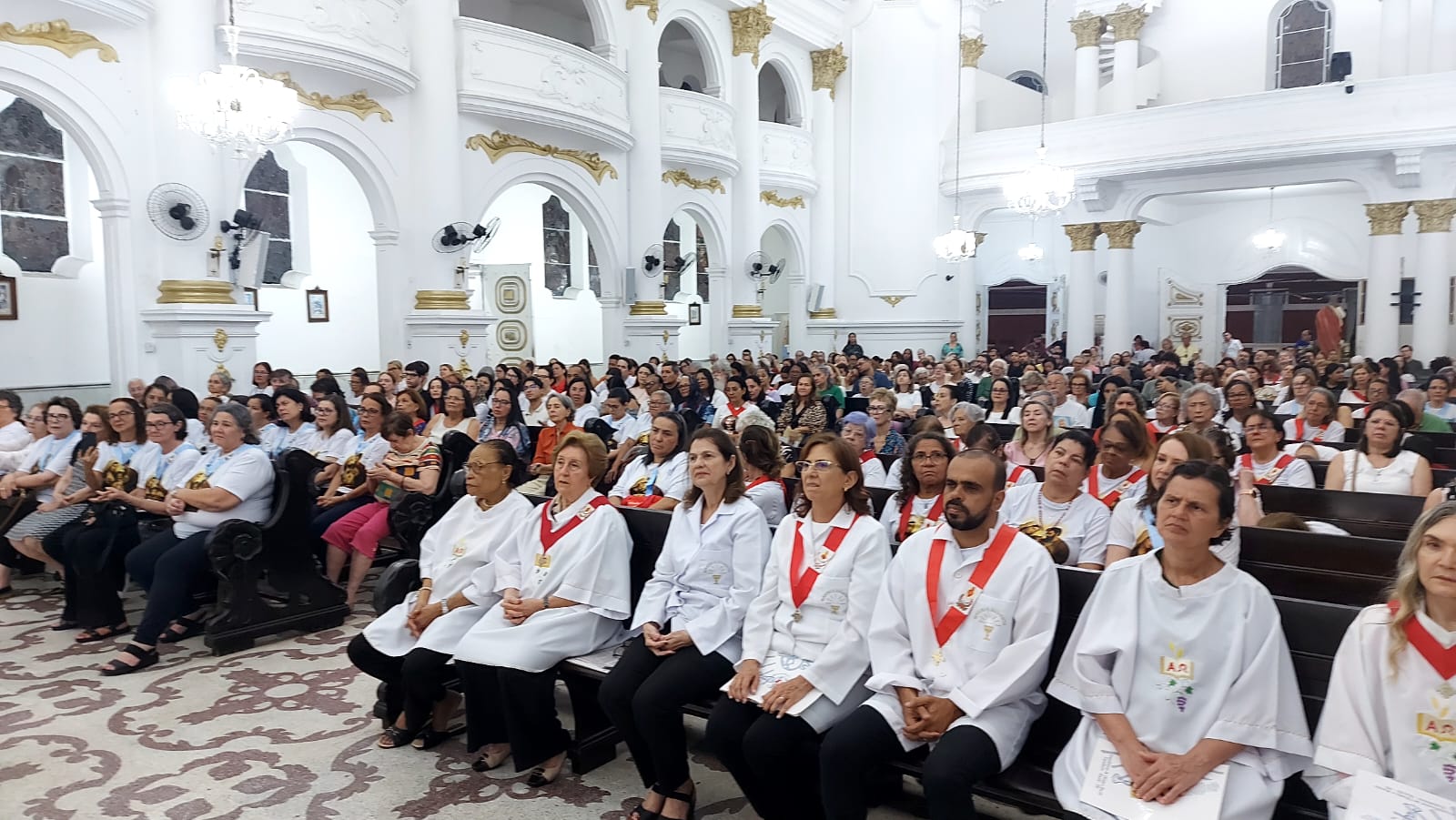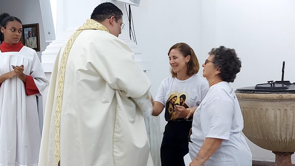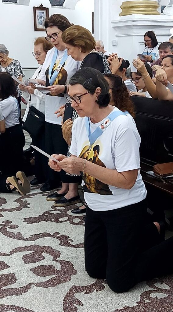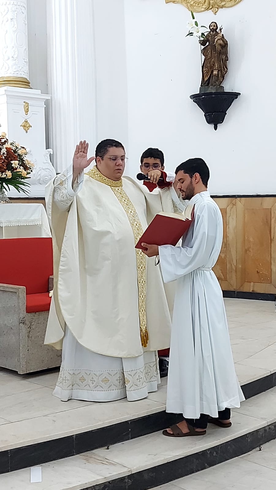 Durante a Solenidade de Todos os Santos, na Paróquia do Sagrado Coração Eucarístico de Jesus, no Espinheiro, a assembleia lotou a matriz. A missa foi presidida pelo padre João Henrique Gonçalves, pároco de Jesus Cristo Bom Pastor (Brejo da Guabiraba). Na homilia, o presbítero externou sua alegria pelo reconhecimento do Apostolado inédito na Arquidiocese. “O grande objetivo desse Apostolado é para que nós nos encontremos nesse caminho que é Jesus Cristo e persistamos no caminho de santidade, em busca do céu, sem abandoná-Lo um dia, um só minuto”, disse o padre João. “Hoje, nós estamos recebendo da Arquidiocese o reconhecimento do nosso percurso de santidade, sendo aprovado nosso jeito de rezar, sendo aprovada nossa maneira de olhar para os Corações, buscando tudo aquilo que Ele sonhou para nós. A santidade, por excelência, está no Coração de Jesus; a pureza está no Coração de Maria e em todas as nossas ações; e o jeito mais primoroso de elevar um louvor a Deus é através da castidade do Coração de São José. Nós somos convidados hoje, meus amados, a começar um caminho que deve ser perpetuado com todos aqueles que ouvirem falar em nosso Apostolado. Nós não seremos Apostolado somente por vestirmos nossas camisas ou as nossas fitas, mas assim seremos se formos Filhos de Deus como Ele desejou que fôssemos, em todos os lugares, dando testemunho. A nossa seara, nosso campo de batalha, não é aqui dentro dessas paredes, mas é no mundo lá fora, onde somos convidados a ser santos, onde tantos tendem a nos dissuadir de nosso propósito. Meus amados, nós somos convidados a dar um testemunho de heroísmo, quando tudo tenta conspirar para nossa perdição. Nós seremos a diferença pela excelência e pelo cuidado dos Sagrados Corações”.