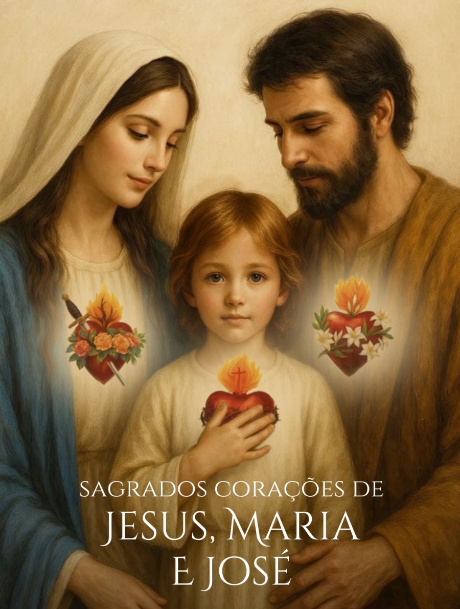 Sacratíssimos Corações de Jesus, Maria e José, a Vós me consagro, junto com toda minha família. Consagramos a Vós nosso ser, nossa vida, tudo o que somos, tudo o que temos e tudo o que amamos. A Vós entregamos nossos corações e nossas almas. A Vós dedicamos nosso lar, nossa pátria e nossa história. Conscientes de que, por esta Consagração, prometemos viver cristãmente, praticando as virtudes, sem jamais nos envergonharmos de testemunhar a fé. Ó Sacratíssimos Corações de Jesus, Maria e José, acolhei esta humilde oferta de amor e entrega, que fazemos a Vós neste ato de Consagração. Amém.