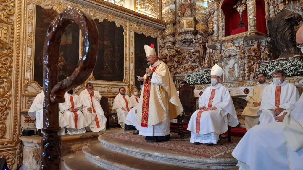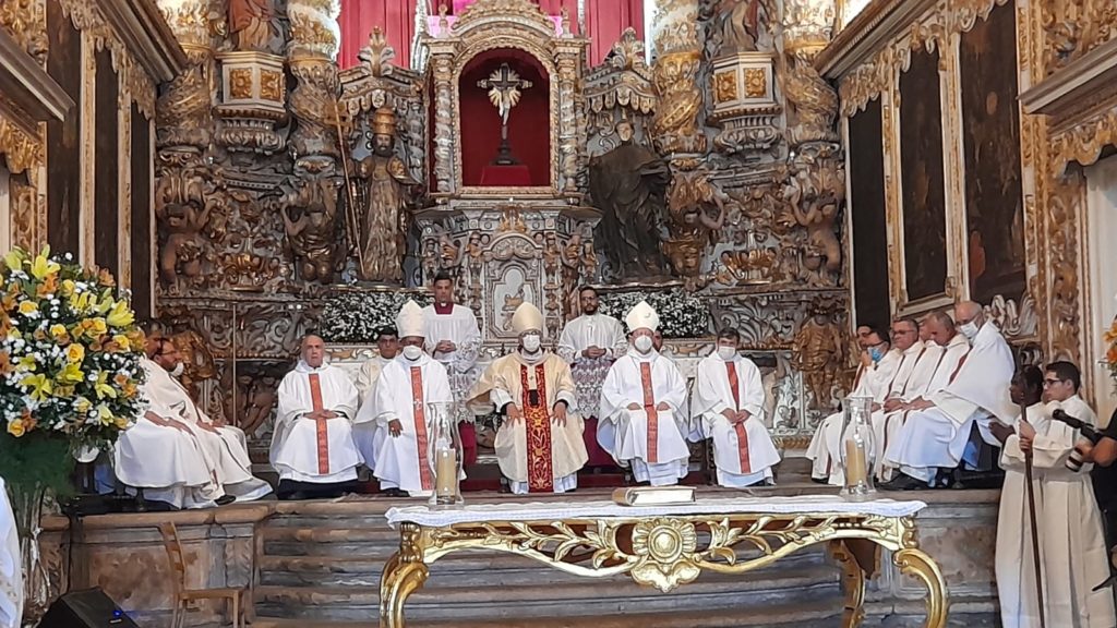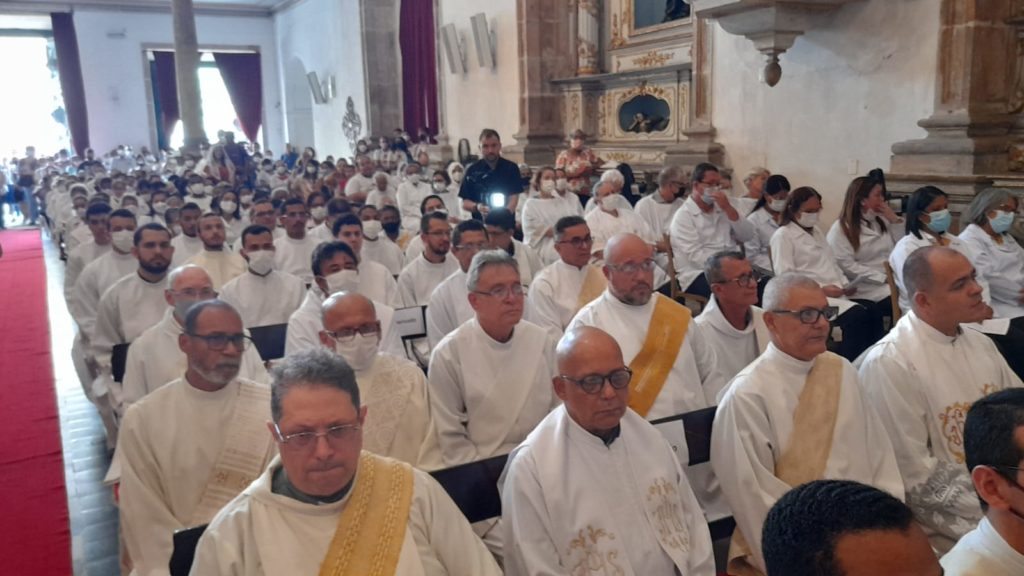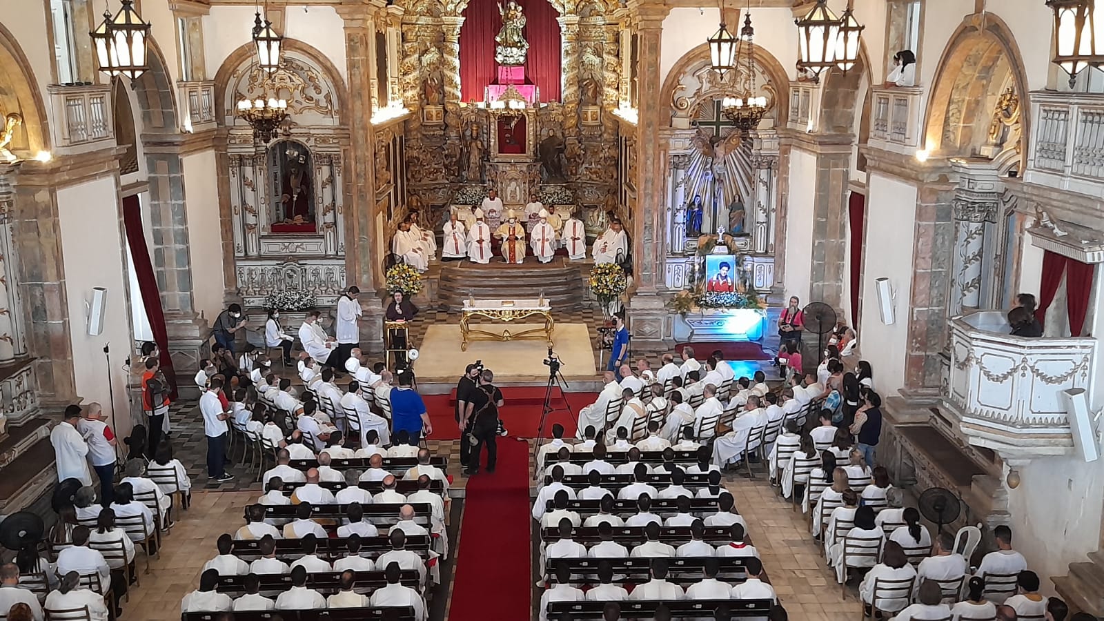 O arcebispo, dom Fernando Saburido, presidiu a missa que foi celebrada pela manhã na igreja Madre de Deus, no Recife Antigo. O bispo auxiliar dom Limacêdo Antônio e o bispo emérito de Vitória da Conquista (BA) dom Luís Pepeu, que é também vigário geral da Arquidiocese, concelebraram a eucaristia no presbitério, ao lado de dom Fernando. Sacerdotes, diáconos, seminaristas e o povo de Deus lotaram bancos e cadeiras da igreja, que disponibilizou telão no corredor lateral para acolher mais pessoas. A solenidade foi prestigiada também por muitos ministros da sagrada comunhão.
