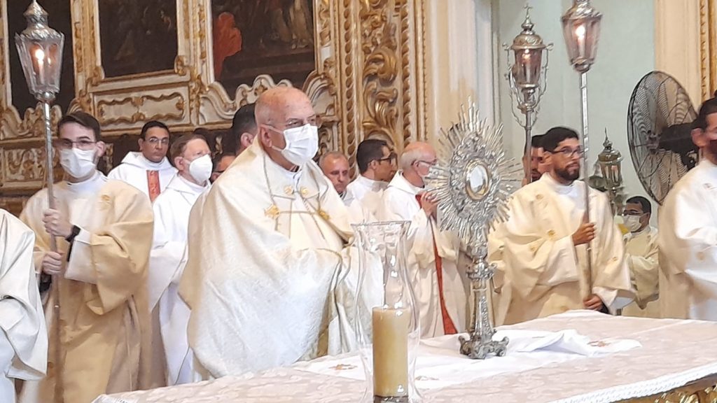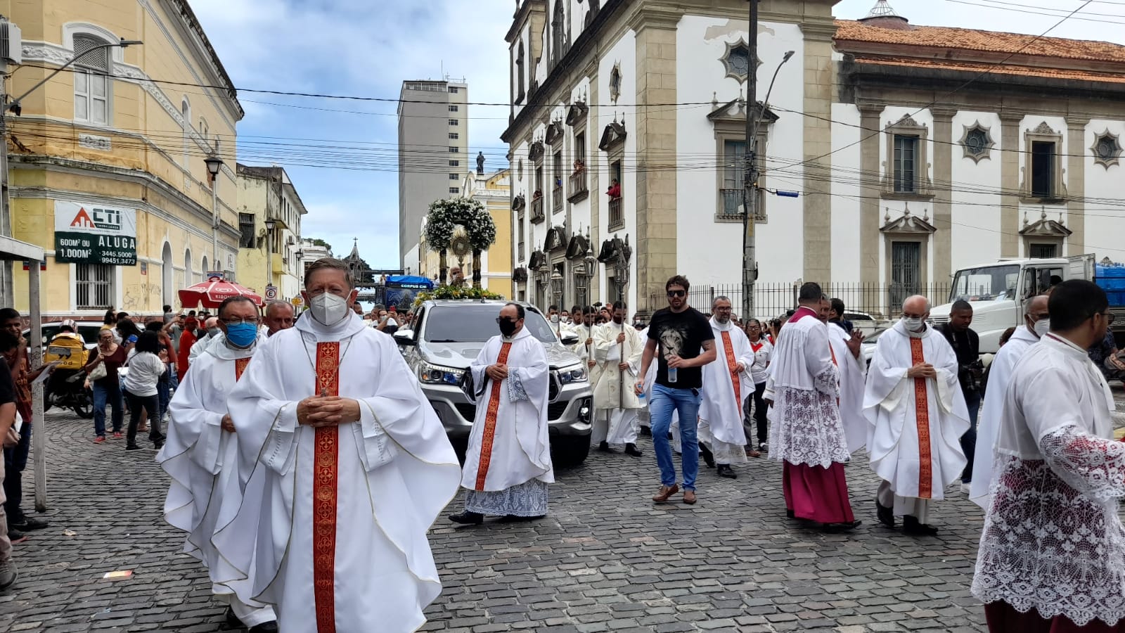 Fiéis da Arquidiocese de Olinda e Recife participaram, nesta quinta-feira (16/05), da solenidade de Corpus Christi em suas paróquias e comunidades. O dia de Corpus Christi é celebrado na primeira quinta-feira após a festa da Santíssima Trindade. É oportunidade para adorar o Corpo de Cristo no Santíssimo Sacramento da Eucaristia, no único dia do ano em que o Santíssimo sai em procissão pelas ruas.