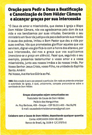 Graças alcançadas por meio da intercessão de dom Helder podem ser comunicadas ao postulador, através do seguinte e-mail: causadedomheldercamara@gmail.com
