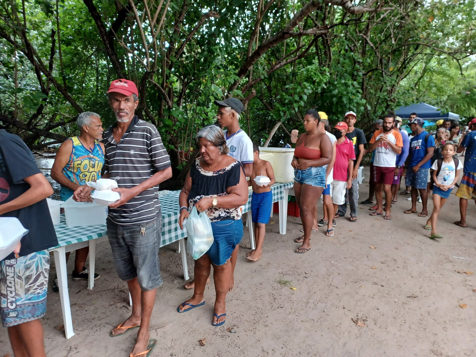 Em seguida, tivemos a benção e distribuição de quentinhas, sanduíches, água mineral e refrigerante, oferecidos pelos parceiros e parceiras da Tenda do Encontro.