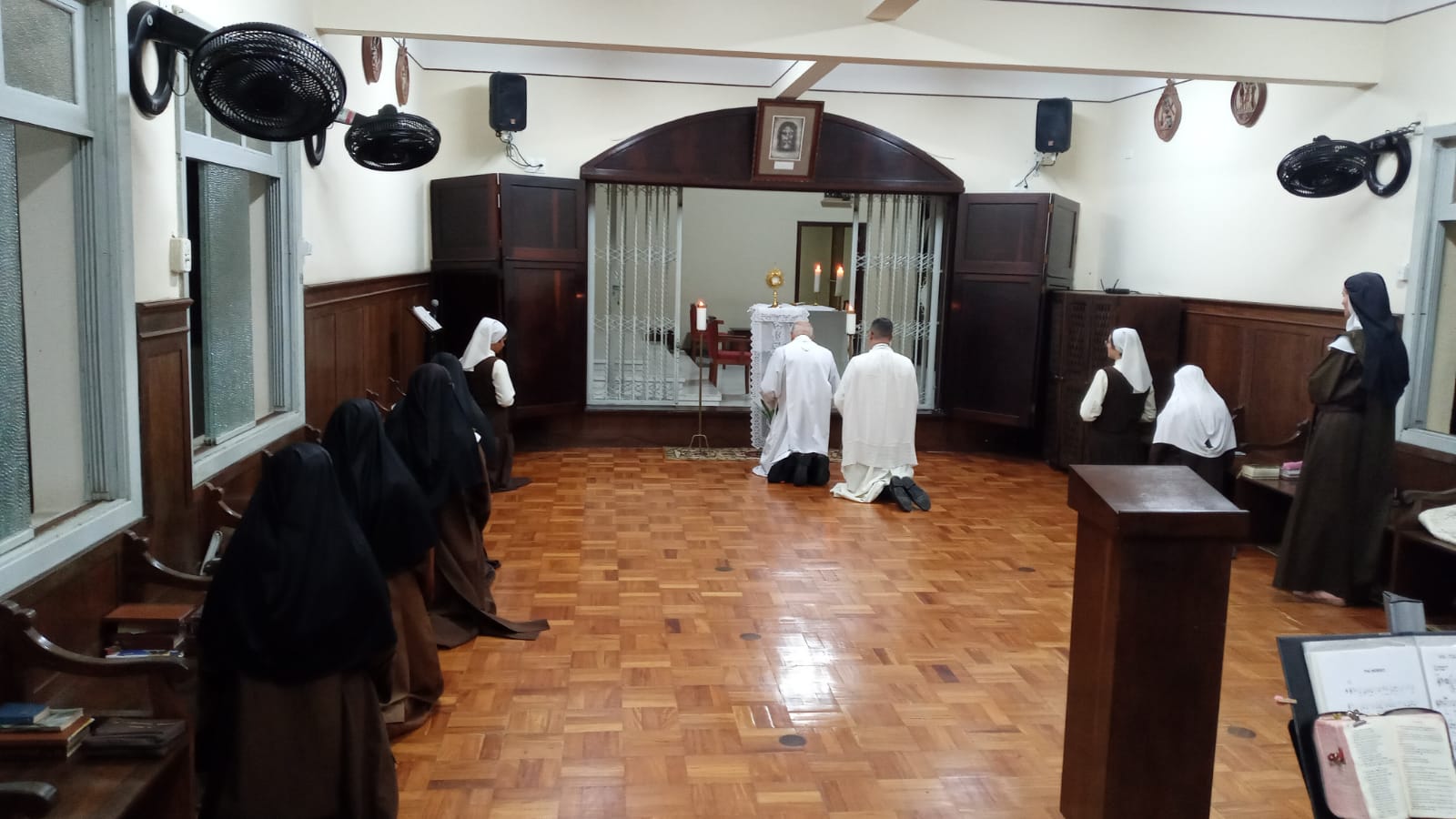 Na tarde desta quarta-feira (14), o arcebispo de Olinda e Recife, dom Fernando Saburido, foi até o Convento da Imaculada Conceição, em Camaragibe, na Região Metropolitana do Recife, palestrar sobre a Eucaristia para as freiras enclausuradas, em vista do XVIII Congresso Eucarístico Nacional. O arcebispo estava acompanhado pelo padre César Augusto, vice-chanceler da Cúria e reitor do Oratório de Santa Teresinha, do Derby, que frequenta o Convento para celebração de missas semanais e para uma formação quinzenal sobre a Eucaristia.