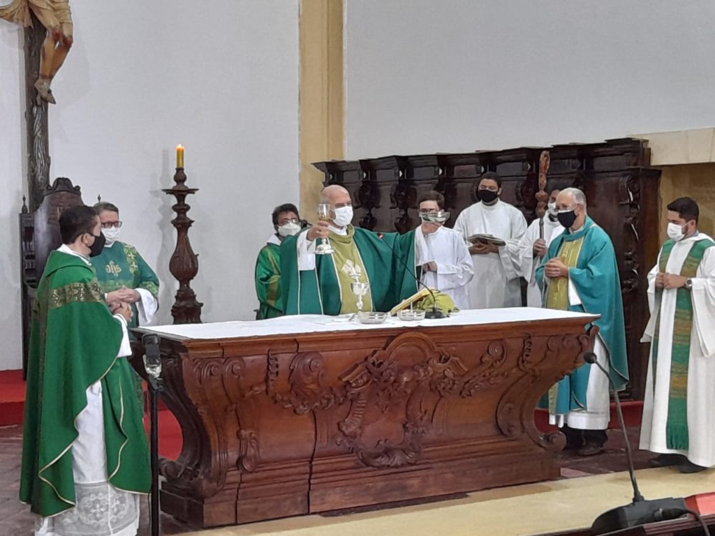 Dom Fernando Saburido abriu o mês vocacional na catedral metropolitana, em Olinda, recebendo padres e diáconos na celebração eucarística deste domingo (1º de agosto) pela manhã. Também alguns seminaristas participaram, representando os demais vocacionados que estão se preparando para o ministério sacerdotal.