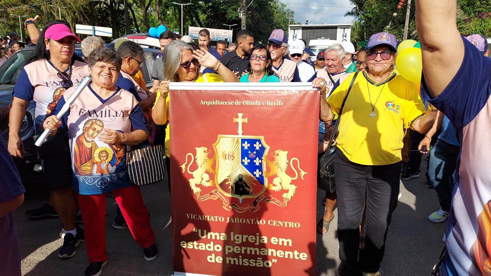 O arcebispo de Olinda e Recife, dom Paulo Jackson, participou do evento – desde a concentração, de onde incentivou os fiéis e rezou com eles de cima de um dos trios elétricos, até a chegada no centro da cidade, onde celebrou missa com padres das oito paróquias que compõem o Vicariato Jaboatão. Dom Paulo mostrou disposição durante o percurso, que fez ao lado do vigário episcopal padre Rogério e do prefeito Mano Medeiros. Na linha de frente, um carro levou a imagem da Sagrada Família de Nazaré, exemplo de acolhimento da vida e de santidade. Logo atrás, milhares de fiéis louvaram e dançaram, animados pelo tema “Corações ardentes, pés a caminho”.