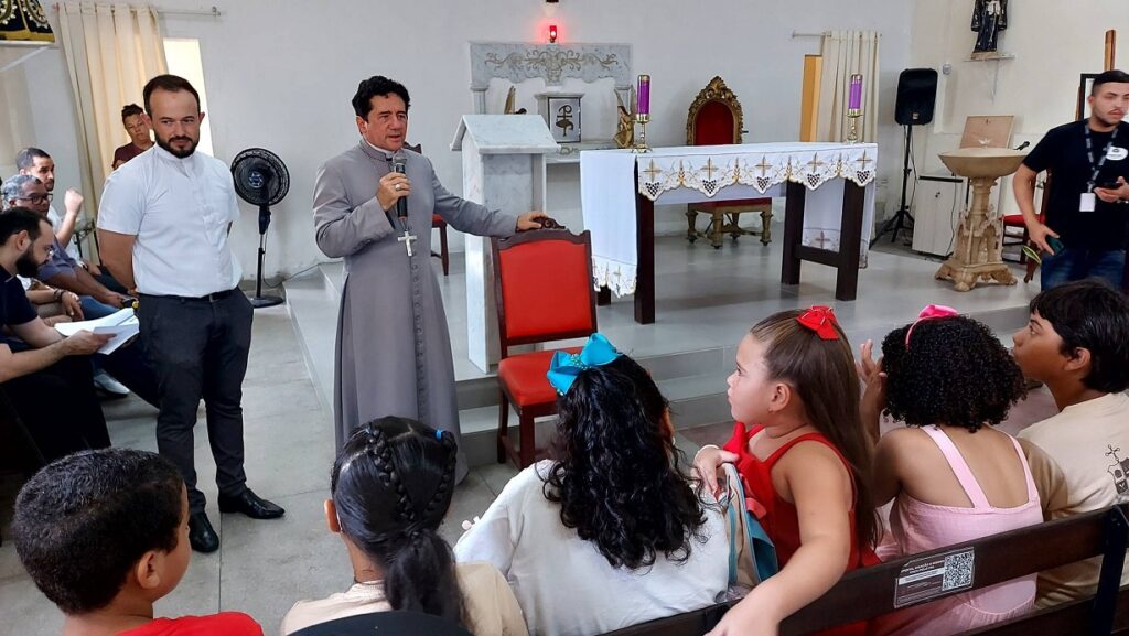 Durante a programação, dom Paulo dedicou atenção especial às crianças da paróquia. Em um momento de convivência marcado pela simplicidade e alegria, cantou com os pequenos e conversou sobre a importância da infância e da adolescência vividas com fé. O arcebispo também destacou exemplos de santidade juvenil, como os pastorinhos de Fátima, reforçando que a santidade é possível em todas as idades.