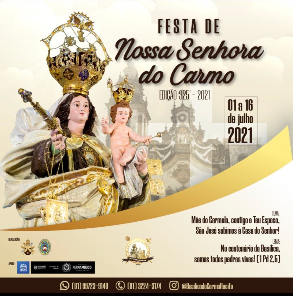 Em referência ao ano dedicado a São José, por convocação do Papa Francisco, e a abertura do ano jubilar dos 100 anos de elevação pontifícia da Basílica do Carmo do Recife, a Província Carmelitana Pernambucana e a Ordem dos Irmãos da Bem Aventurada Virgem Maria do Monte Carmelo, apresentam os detalhes da Festa de Nossa Senhora do Carmo 2021.