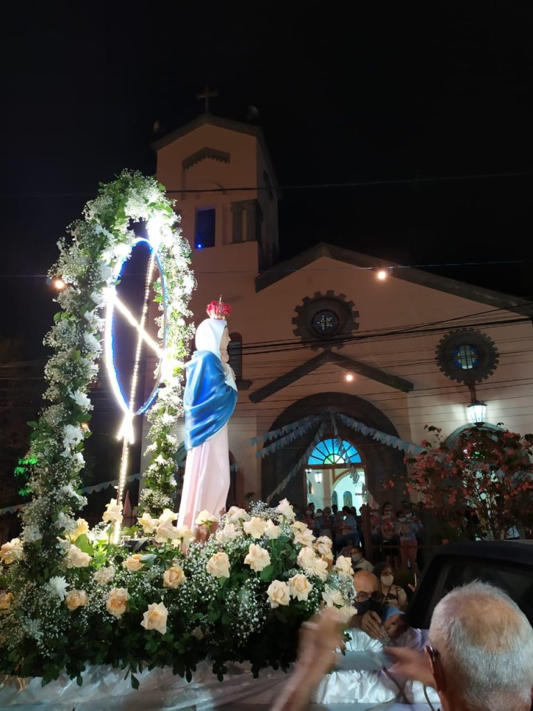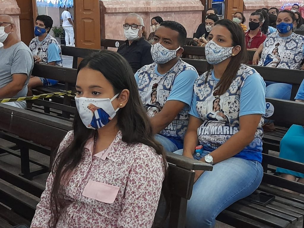 As máscaras escondiam o sorriso, mas o entusiasmo podia ser visto nos olhos dos paroquianos. A paróquia Santa Maria Mãe de Deus realizou a festa de sua padroeira com um novenário marcado pela organização. Celebrações eucarísticas com controle de quantidade de pessoas, aferição de temperatura na chegada à matriz, álcool em gel disponibilizado na entrada da igreja e antes da comunhão, locais marcados nos bancos da igreja para garantir o distanciamento social.