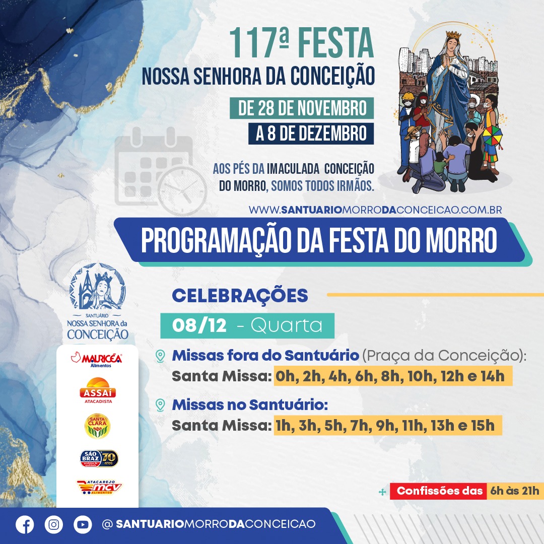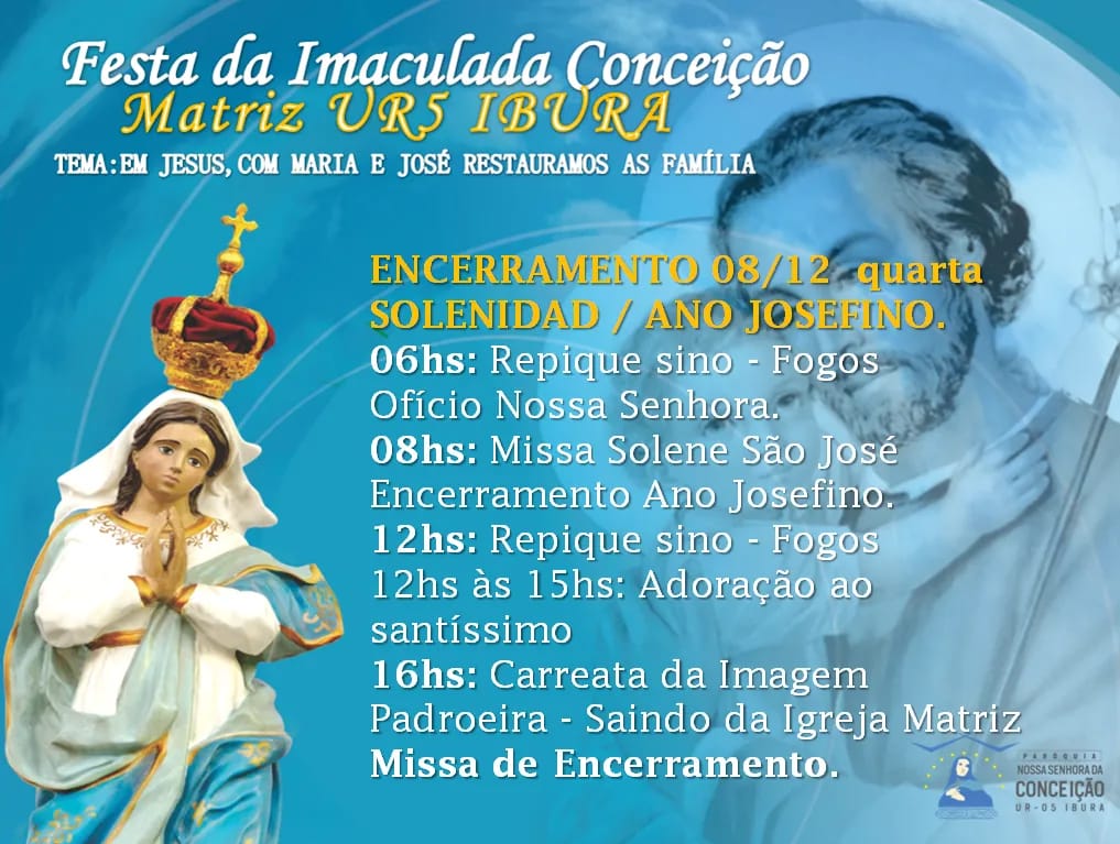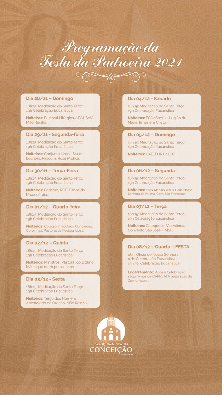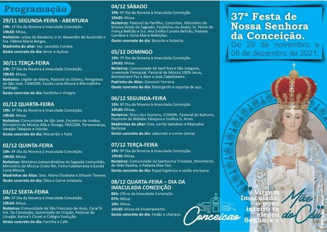 Veja abaixo a programação das festas em algumas paróquias dedicadas a Nossa Senhora da Conceição.