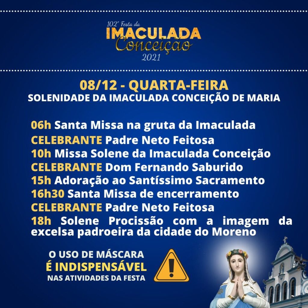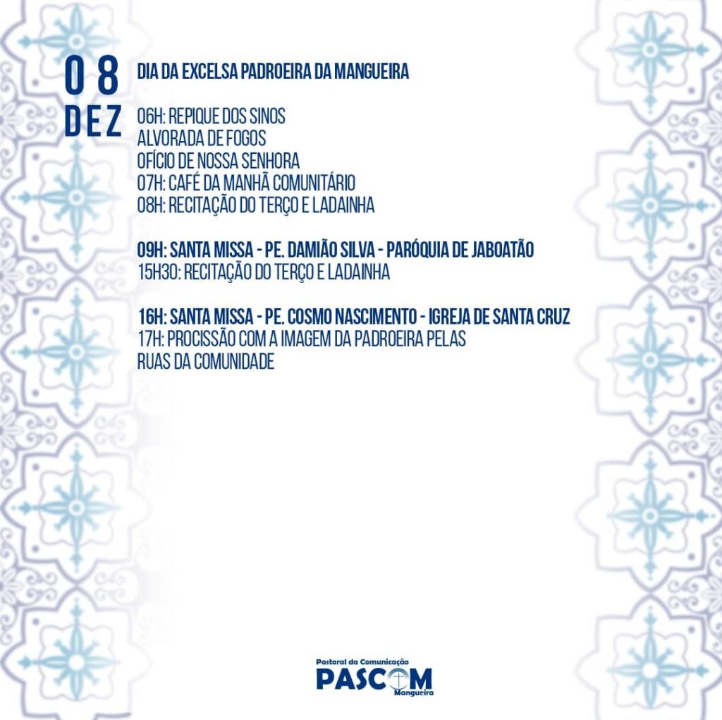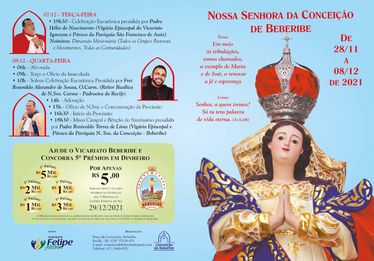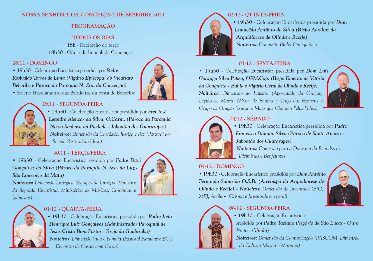 “A Virgem da Conceição será festejada com amor e responsabilidade”, pontuou o arcebispo de Olinda e Recife, dom Fernando Saburido, “Sejamos cuidadosos nas celebrações, pensando em nossa saúde e na saúde dos irmãos, e juntemos a nossos pedidos uma prece de agradecimento pelo olhar materno da Virgem durante a pandemia, por todo consolo que vem de sua devoção, por sua intercessão junto a seu Filho”.