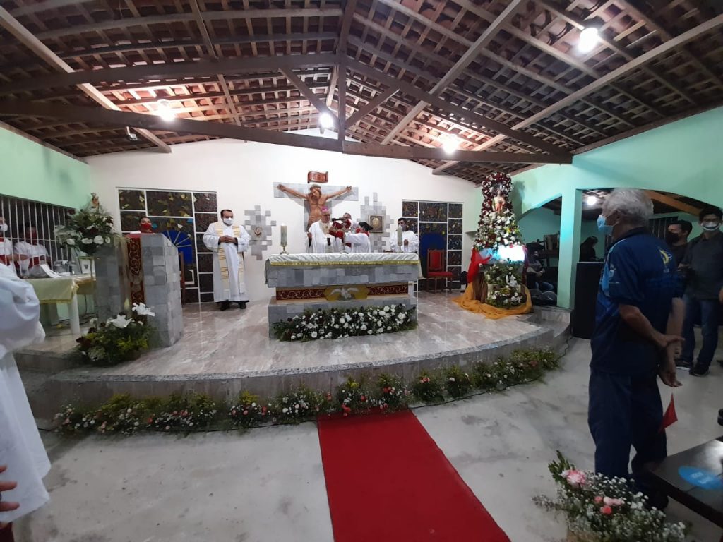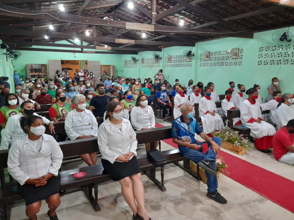 Os paroquianos participaram com alegria da festa. Um telão foi instalado na lateral da igreja, reproduzindo as imagens que eram transmitidas ao vivo pelas redes sociais da Paróquia. No presbitério, o administrador paroquial, padre João Batista Aragão, e seu precursor, frei Edivan Santos, concelebraram a missa.
