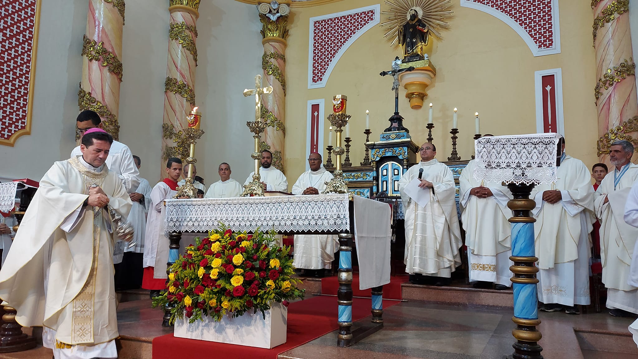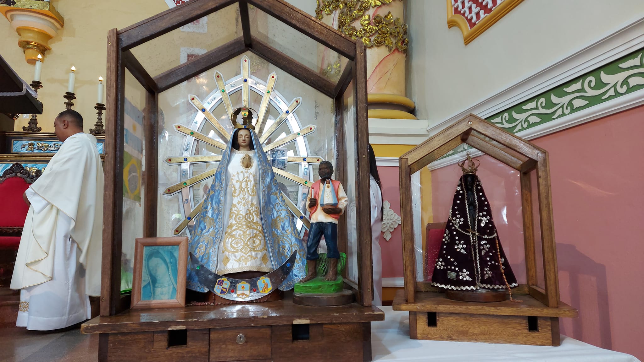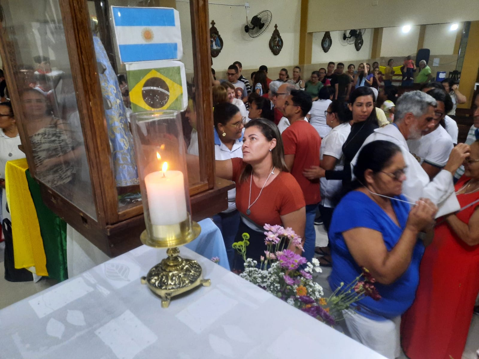 A missa na Paróquia de Santo Amaro e a peregrinação dos ‘hermanos’ aproximam Brasil e Argentina na devoção a Nossa Senhora. No presbitério, concelebraram o bispo auxiliar da Arquidiocese de Olinda e Recife, dom Limacêdo, além do padre Rogério Silva, pároco. Os três sacerdotes argentinos peregrinos também celebraram a Eucaristia, ao lado de outros padres do Vicariato Jaboatão. Para o padre argentino Sergio Gomes Tey, Maria traz alegria por onde passa. “Estou feliz com a peregrinação, com a acolhida a Nossa Senhora, muito agradecido”, comentou.