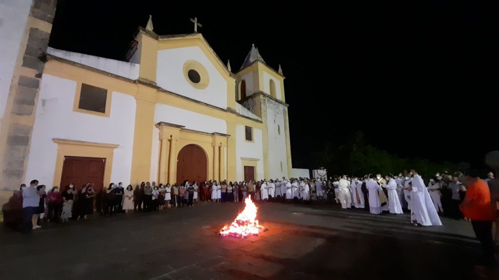 Chega o sábado (16) e o fogo diante da igreja catedral é abençoado pelo arcebispo para acender o Círio Pascal, que representa Jesus, a Luz do Mundo. Os cinco cravos no Círio são as chagas de Cristo na cruz: mãos, pés e lado transpassados por pregos e lança. A sequência de leituras e salmos se encerra com o Glória e o anúncio da Ressurreição de Jesus. É Páscoa! As velas do presbitério são acesas e, com a renovação das promessas do batismo, o povo se compromete mais uma vez com o projeto de Deus. A Eucaristia se faz presente no altar e a comunhão acontece para a alegria dos que creem na vida eterna.