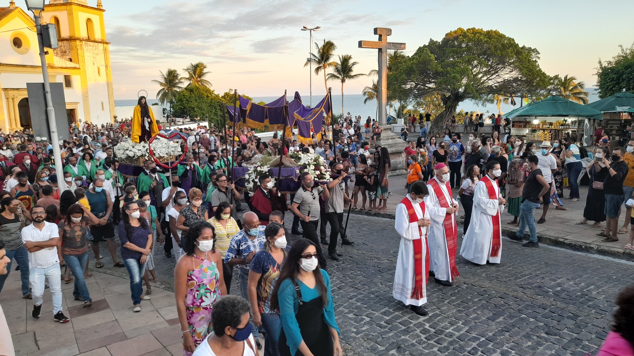 Na sexta-feira (15), na igreja catedral, o cortejo litúrgico silencioso mostrava a tristeza pela morte de Jesus. Prostrado diante da cruz, o arcebispo pediu perdão pela incompreensão do mundo. O madeiro santo se descobria diante de fiéis emocionados. Por conta da persistência da pandemia, somente arcebispo, padres concelebrantes e diácono beijaram a cruz, que foi apresentada solenemente aos fiéis. A hóstia não foi consagrada: o povo recebeu a reserva eucarística que estava guardada desde o dia anterior. Depois de dois anos, o povo pôde acompanhar, pelas ruas históricas de Olinda, a tradicional procissão do Senhor Morto.