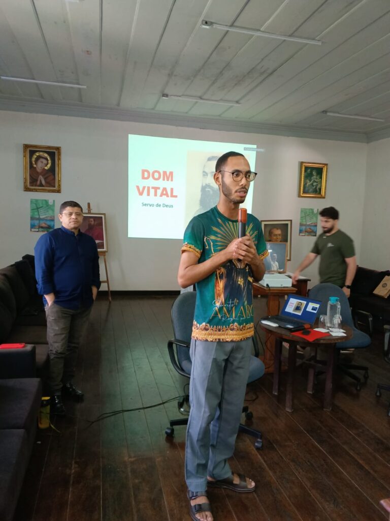 A convite do reitor do Seminário, o religioso frei Jociel Gomes falou sobre o testemunho de vida de seu confrade capuchinho dom Vital, bispo de Olinda que se tornou a figura proeminente na Igreja Católica no Brasil no século XIX. Dom Vital é conhecido por sua atuação durante a Questão Religiosa, um conflito entre a Igreja e o Império brasileiro, especialmente por sua resistência à influência da maçonaria em assuntos eclesiais, que levou à sua prisão e condenação.