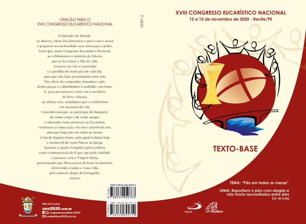 Vale destacar que o Texto-base do Congresso Eucarístico Nacional se encontra à venda nas paróquias da Arquidiocese e na Paulinas Livraria Recife, pelo valor de R$12,50. Informações: (81) 3224-9028 (Paulinas Recife).